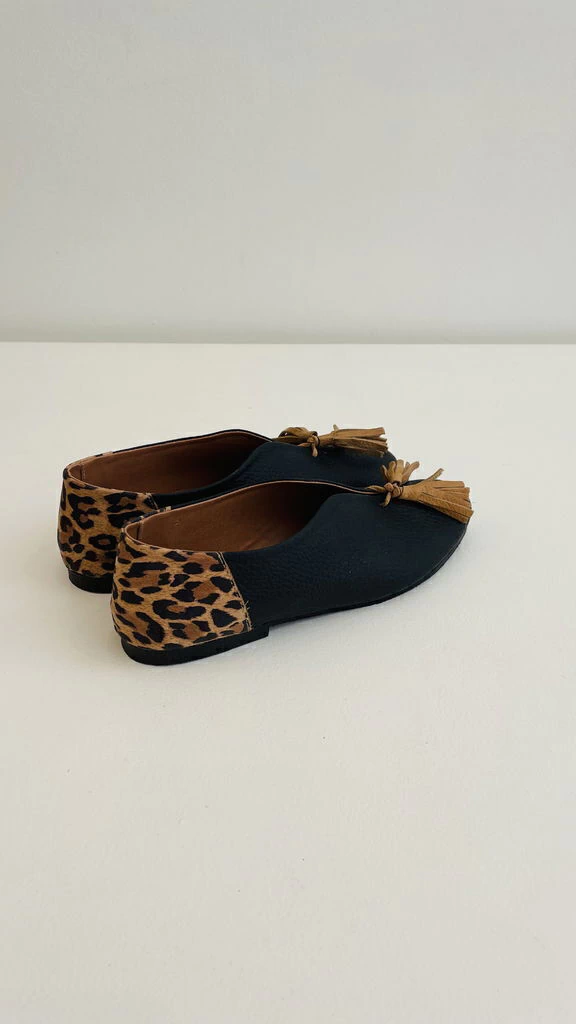 Descubre nuestras BOMBONAS de cuero en un clásico color negro combinado con animal print, un calzado que no solo es estiloso, sino que también ofrece una comodidad excepcional. Con un escote en V, este modelo es super flexible y liviano, ideal para llevar durante todo el día sin sacrificar estilo.