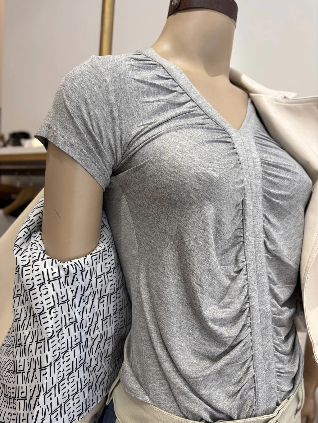 Descubre nuestra REMERA SHHHHH, una prenda que combina confort y estilo en un solo diseño. Confeccionada en un suave género de viscosa de algodón con lycra, esta remera se ajusta perfectamente a tu figura, realzando tus curvas con su elegante detalle drapeado.